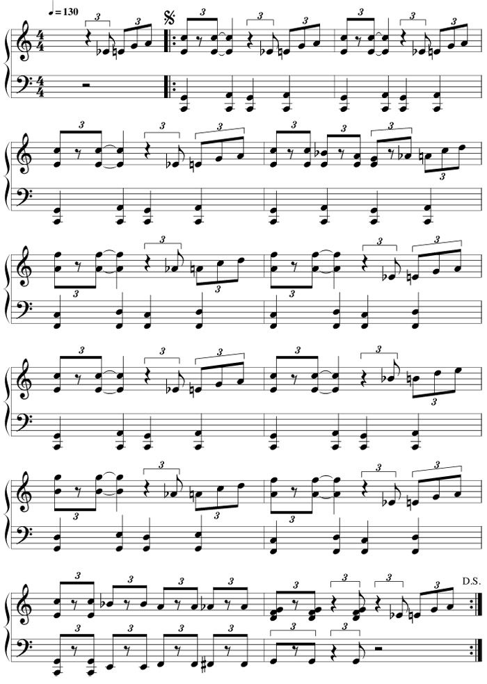 Grille blues en Do: C / C / C / C / F / F / C / C / G / F / C / G